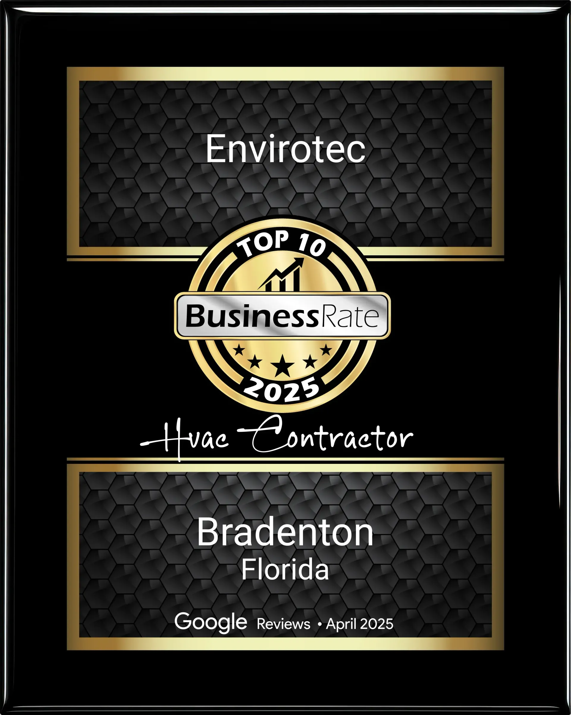 Voted Top 10 HVAC Contractor in Bradenton, Florida based on google reviews - 2025